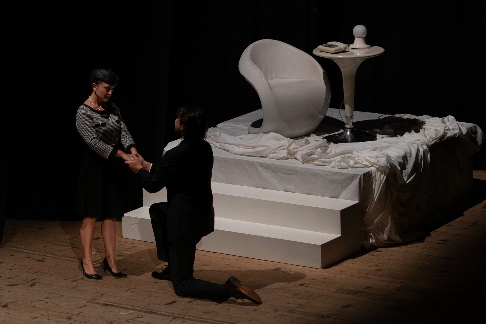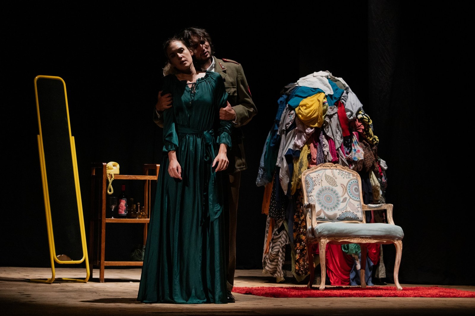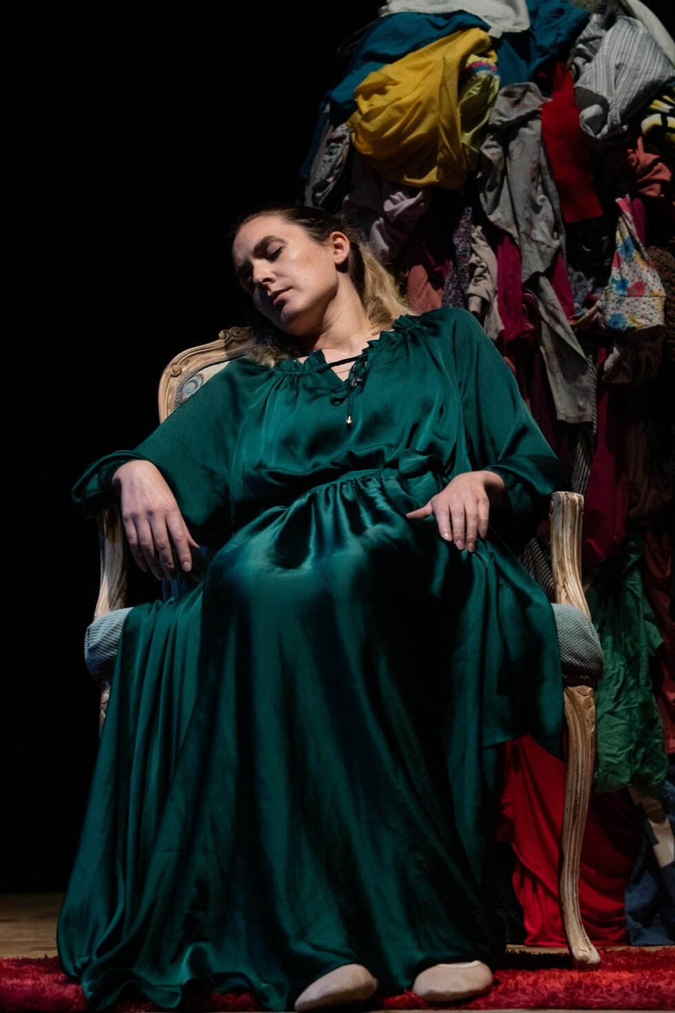 Ecco la bellissima Medea, scartata come una scarpa vecchia, che guarda a cosa le resta: l’abito, anzi un intero guardaroba, sontuoso, colorato, espressione della sua irrefrenabile vitalità e sensualità, anche ora che un mondo cupo e borghese la schiaccia e la esclude, perché diversa.